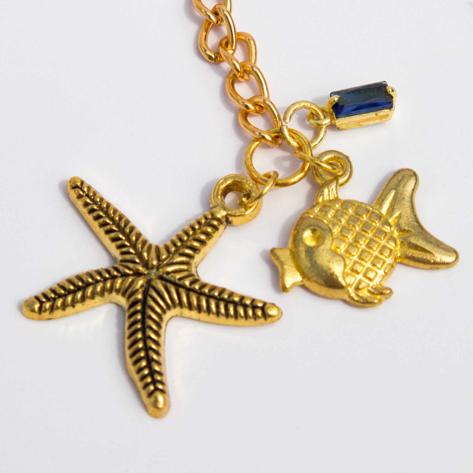 Finished with gold-tone charms—a shimmering starfish, a playful fish, and a tiny blue gem—this bookmark feels like a keepsake from a sunny seaside escape. Whether you're reading poolside or daydreaming at your desk, Deep Blue Seaskeeps the beach close by.